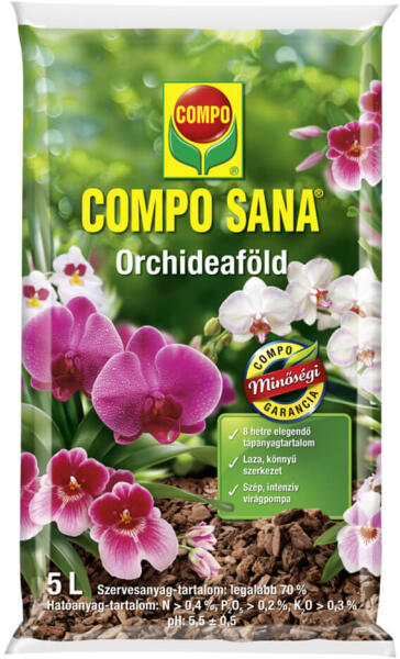 A Compo orchidea virágföld fenyőkéreg és polisztirol golyócskák keverékéből áll, így különlegesen levegős szerkezetet biztosít. Ez megakadályozza a vízpangást és a gyökérrothadást, miközben stabilan tartja a növényt a cserépben. A hozzáadott tápanyagoknak köszönhetően a közeg akár 6 hétig biztosítja a növény kezdeti ellátását. Ez a virágföld ideális földben gyökerező és epifita orchideák számára egyaránt. Segíti a gyökerek egészséges légzését, javítja a vízelvezetést, és hozzájárul a virágok hosszabb élettartamához. Kiválóan használható átültetéskor vagy új orchideák beültetéséhez, biztosítva a megfelelő környezetet a gyökerek számára. Jellemzők